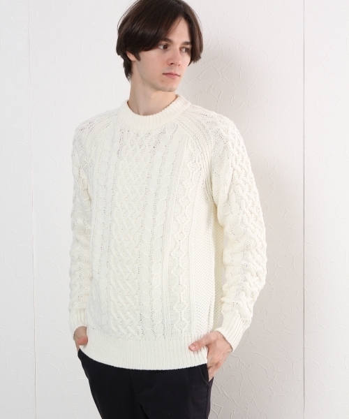 ★軽くて暖か★ ざっくりとした立体的な編地で存在感のあるニット。 コットンとアクリルの混合素材でふくらみがあり、軽く保温性が高い特徴をもっています。 一枚着でもスタイルの主役になり、アウターのインナーとしても存在感抜群です。