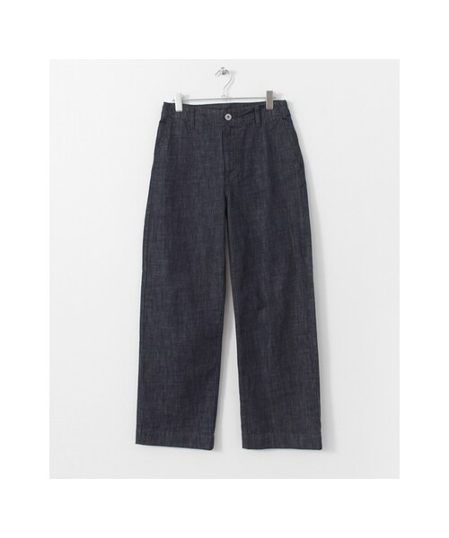 定番のワイドデニムパンツをハイウエスト仕様にアップデートしました。シックに決まるワンウォッシュ加工に施し、大人カジュアルのワードローブにプラスしたい一本に仕上がっています。また、裾にかけて少し広がりを見せるシルエットはスッキリと脚長効果があり、シンプルなアイテムにもデザインアイテムにもマッチするボトムスなので、スタイリングの幅が広がります。※この商品は、インディゴ染料を使用している為、着用の際、汗や雨、摩擦などにより色移りすることがありますので、ご注意ください。