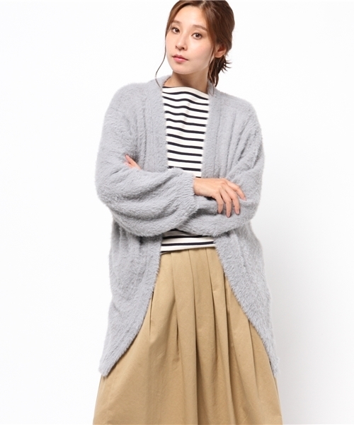 柔らかく肌触りの良いシャギーニットカーデは、ボリュームの割に軽さがあるのでリラックスして着れます。形はシンプルながら素材で季節感を出せるアイテムになっています。