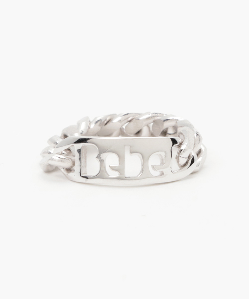 【Rozy(ロージー)】 モノポライズ 独占する ボリューミーでトレンド感たっぷりのチェーンリングでゴールド色、シルバー色の2色展開。トップはステンシルの透かし文字になっており、シルバー色はスラングでBebe(いとしい人。恋人への呼びかけで使用する)の文字が入っています。チェーンとプレートは指のラインにフィットし普段使いしやすいようデザインされています。これだけでインパクトのあるおしゃれなコーディネートに仕上がります。お揃いでネックレス、ブレスレットの展開がございます。