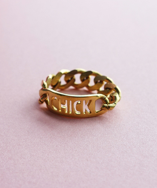 【Rozy(ロージー)】 モノポライズ 独占する ボリューミーでトレンド感たっぷりのチェーンリングでゴールド色、シルバー色の2色展開。トップはステンシルの透かし文字になっており、ゴールド色はスラングでCHICK(若い、かわいい娘)の文字が入っています。チェーンとプレートは指のラインにフィットしなじみよく普段使いしやすいようデザインされています。これだけで?インパクトのあるおしゃれなコーディネートに仕上がります。お揃いでネックレス、ブレスレットの展開がございます。※スラングとは英語の若者言葉や遊び言葉