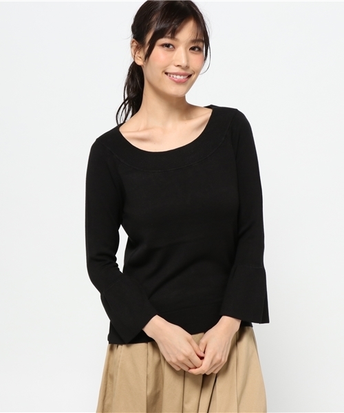 【CanCam11月号掲載】袖口で広がるベルデザインがアクセントになった新作ニット。デコルテ美人に見える綺麗なネックラインが、大人の女性らしさを引き立ててくれます。幅広いボトムと相性バツグンなベーシックカラーでご用意しました。秋の先取りアイテムとして今すぐワードローブにイン♪