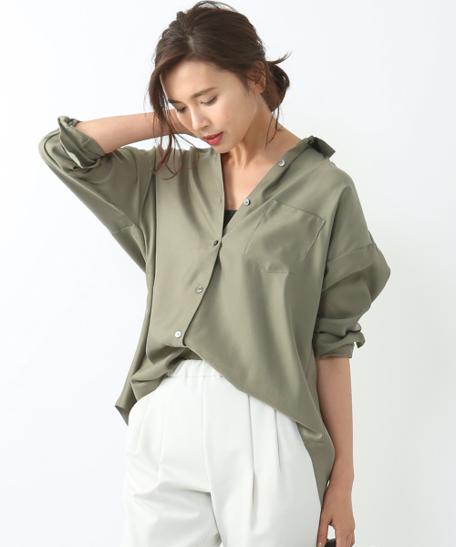 着るだけで抜き衿になるように仕立てられているので、首筋がすっきりと美しく映ります。すとんと落ちるシルエットが自然とこなれた雰囲気を作りあげてくれます。