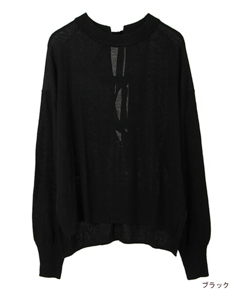 【FUDGE 10月号掲載】後ろ身頃についたベロアリボンがフェミニンな印象のニットプルオーバー。カラーがレッド、ベージュ、ブラックと落ち着いた色味の展開で甘すぎず、デザインもシンプルなのでコーデに取り入れやすいです。デニムパンツやロングスカートと合わせて大人っぽい着こなしがオススメ。