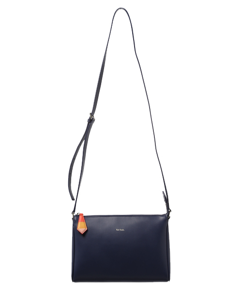 ファスナーの引き手がアクセントになっているショルダーバッグ。 本体にはキズや雨に強くお手入れもしやすい床革を使用しました。 内ポケットにはポール・スミスオリジナルのカラフルなストライプ生地を、ファスナーポケットのライニングには鮮やかなコントラストカラーを施し、ポールスミスらしいツイストを効かせました。 小さめのサイズが可愛らしいシンプルなデザインは大人っぽいスタイルにもフェミニンなスタイルに合わせやすく、デイリーユースにぴったりなアイテムです。 ※表面は水をはじきやすいPU素材のため保革油などでのお手入れは必要ありませんが、経年劣化は避けられません。またライニングのストライプは1点1点柄の配置が異なりますので予めご了承くださいませ。 品番: 863850 W930