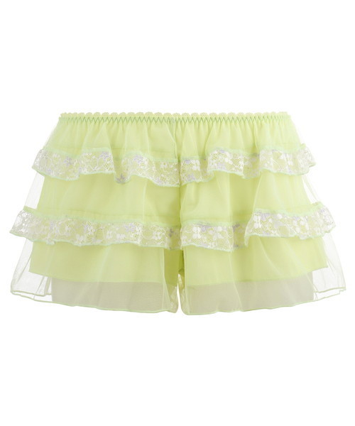 ■ヒップサイズ: [M]:87-95cm [L]:92-100cm ■はきこみ丈:普通 フリルを重ねたふんわりボリュームのフレンチパンティ。 チュールネット素材の身生地に きらきらと輝く編みレースを贅沢にあしらっています。 ミニ丈のアウターとコーディネートしたり、 おねむりパンツとして着用したり、 お部屋着としても活用できます。 身生地はシアー感のあるチュールネット素材で軽いはきごこち。 裏打は全面にトリコット素材を使用しているので、 肌の透けが気になりにくく、1枚でさらっと着こなせます。 1枚ばきもできるように、マチが付いています。 ※柄物商品は裁断の関係上、 柄の出方が画像と異なる場合があります。