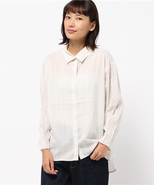 スタイリングを爽やかでスマートな印象に見せてくれるストライプ柄のオーバーシャツ。一見スタンダードなデザインながら、フロント裾をクロスさせてサイドの内側に配したボタンを留めればカシュクール風にと、1枚で2つの表情が楽しめるのも魅力的◎タイトスカートにINしてレディに、ワイドパンツでモダンにと、多彩なテイストで着回せるスタイリング力の高さも自慢です。
