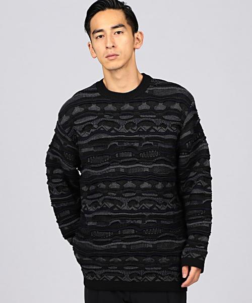 EN ROUTE(アンルート) オリジナルコレクション アンルートが表現する80年代風3Dニット ウールジャカードのプルオーバーニット。80's風の立体的なボーダー編地が特徴のこちらは、インパクトのあるデザインを同系色でまとめることでミニマルな印象に。ボトムはデニムではなくあえてクリーンなウールスラックスや化繊素材のパンツといったアイテムでまとめるのがアンルート的スタイリングです。 店舗にお問い合わせの際は、 EN ROUTE各店舗まで下記の品名/品番をお申し付け下さい。 品名:ENR MLTI-COL 3DJQ BOR PO 品番:7113-299-0103
