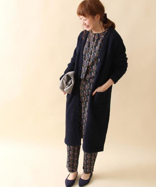 ふっくら温かみのあるモールヤーンで仕上げたカーディガン とても柔らかで肌当たり抜群のモールヤーンで編み上げたカーディガン。 シャープなVネック、ストンと落ちるIラインでスッキリと着こなせます。 ふっくらとした糸は、見た目に可愛いだけでなく、温もりもしかりキープ。 こっくりとした秋色カラーも魅力です。 ※実店舗と発売時期が異なることがございます。 あらかじめ御了承下さい。 ※商品サンプルにて撮影しております。 店舗にお問い合わせの際は、全国のコーエン各店まで下記の品番をお申し付け下さい。 品名:TC モールヤーンLONG C/GN 品番:7637-639-6051