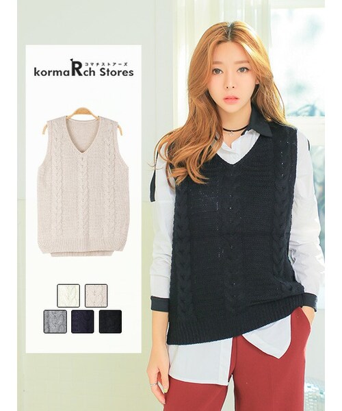 【メール便対象商品】【ラウンドネックケーブルニットベスト】秋冬のレイヤードに一着あると様々なシーンに活躍するベスト。厚手のお作りがしっかり保温性もあり体をゆったりと包み込む安心感もあります!