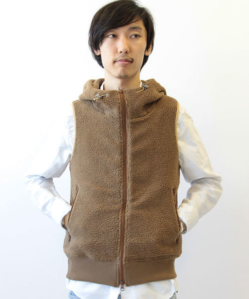 ◆FREDY&GLOSTER◆ ボアフリースを使用したオリジナルベスト。 ポケットや前立てのステッチを排除し、ファスナーを裏使いすることですっきりとした印象を与えてくれます。 フロント襟の立体感など配慮し清潔感のあるアイテムに仕上げています。