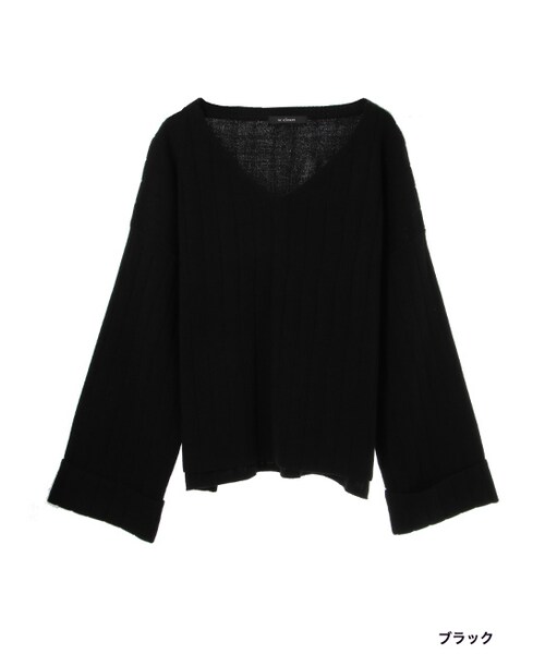 シンプルなデザインのVネックニット。ほどよい開きなので、首回りをすっきりきれいに見せてくれます。幅広の編地やワイドな袖でリラックス感のあるシルエットに。袖先のターンバックもポイントです。シンプルなアイテムなので、フレアスカートに合わせたりパンツに前だけインしてなど色々とコーデが楽しい1枚です。
