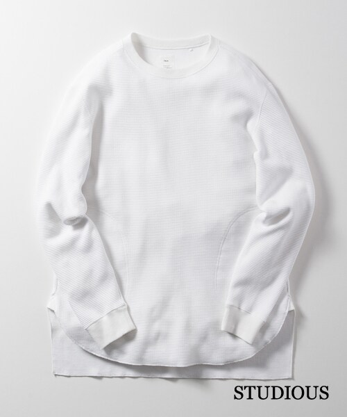 GIZA糸(エジプト超長綿)素材のオリジナルワッフル天竺を使用したクルーネックロングスリーブカットソーです。豊かな光沢、ふんわりとした肌触りが単品、レイヤード使いとしても栄えるアイテムです。