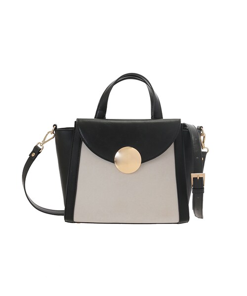 大きめのラウンドメタルパーツが特徴的な2WAYショルダーバッグ。