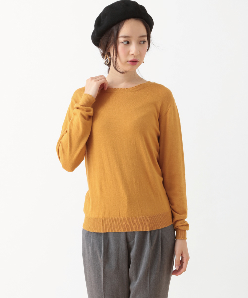 ネックラインや袖口にあしらったもこもことしたスカラップデザインが愛らしさをプラスする、大人レディなニットプルオーバー。 肌触りの良いレーヨン・ナイロン素材を使用しているので、ノンストレスにスタイリングできるのも魅力的なポイント◎ シンプルなデザインでコーディネートに取り入れやすく、デニムと合わせてカジュアルに、フレアスカートに合わせたガーリースタイルもおすすめです。
