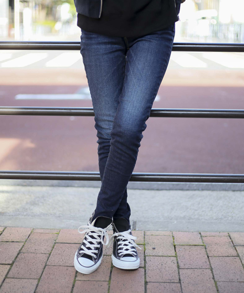 ストレッチ生地を使い穿き心地抜群のスキニー! 色落ち◎です! 濃いめの色合いで使いやすい!細めのシルエットで様々なトップスに相性がいいです! 生地作りから縫製まで全て国内で行い、 日本人体系にマッチするハイウェストスキニーデニムです。
