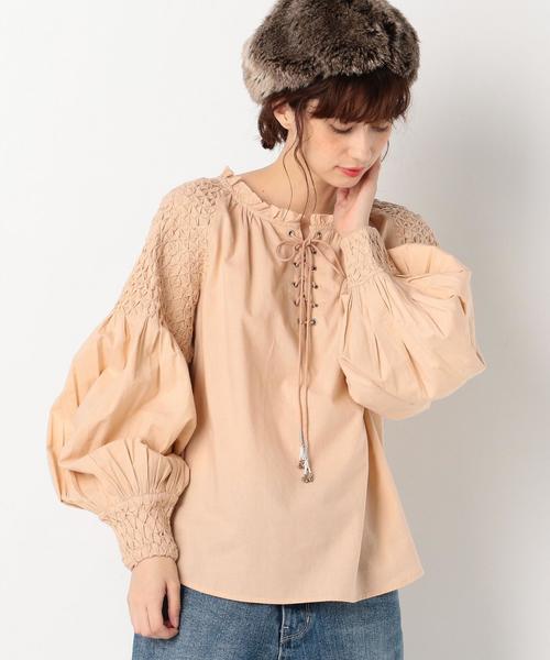 ◆KIIRA◆スモッキングロングスリーブブラウス☆ 毎シーズン人気の◆KIIRA◆から新作が到着! 新作ブラウスは、スモッキングを取り入れることで、ふんわりとしたシルエットにメリハリができ、スタイリングに取り入れ易い一枚に。 また、大胆なスモッキングは、刺繍のような雰囲気でボヘミアンチックに仕上がっています。 ネックのレースアップの端に施したビーズパーツもさりげないポイントです♪ ***KIIRA*** 80'Sムービー"Xnadu"主人公のダンスと音楽の女神"キーラ"は、とってもCuteで明るいちょっとセクシーな女の子。 海・山・フェス、もちろんCityにも。オシャレに大人可愛く様々なシーンに"キラキラ"輝いていている女性をイメージした日本のブランド。 ※着用、お取り扱いの際は商品についておりますアテンションタグ、洗濯ネームを必ずご確認ください。 店舗にお問い合わせの際は、全国のAnother Edition店舗まで 下記の品名/品番をお申し付け下さい。 品名:KiiRA SMOCKING LSL BL 品番:56215990764