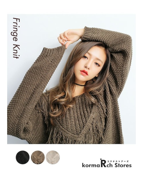 【フリンジニットプルオーバー】フロントにフリンジデザインをあしらったニット。単色仕様ながらも、フリンジが着こなしのアクセントになります。