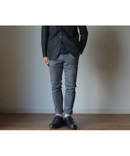 ※お取り寄せサイズにつきましては、ご購入お手続き後3-5日で発送させていただきます。メーカー在庫完売によりご用意できない場合もございます。その際はご了承お願い致します。 ■ブランド説明■ 【F.O.B FACTORY(エフオービーファクトリー)】 岡山県の南端に位置する繊維の町、児島。 私たちはこの町で、職人に学び、職人と一丸となって服を作っています。 質の良い生地、確かな縫製。そこにある丁寧さと安心感。 それぞれの技術や生地の特性、そして着用する身体そのものやその生活を考えることで必然的に生まれるデザイン。 そうして作られた私たちの服が、皆様の生活のなかにほんの少しでも良き影響を与えられたなら、それは私たちにとって非常に幸福な出来事となるのです。(HPより抜粋) ----------------------------------------------------- ■アイテム説明■ 【F0438 RELAX NARROW EASY PANTS】 FOBの大定番パンツ、リラックススウェットパンツに新型が登場です。リブを無くし、より細身に仕上げたテーパードシルエットはとてもすっきりなトラウザーへとアップデートされました。 ■生地 デニムでありながらスウェットのような履き心地を実現した、"リラックスデニム"とネーミングされたFOBオリジナルの生地です。材料の混率、糸の番手、そして打ち込み本数までも考え抜き完成しました。 柔らかく、伸縮性に富んだ生地感はまさしくスウェットで着心地抜群です。素材自体は縦糸・緯糸で構成されたデニム生地なので、丈夫で着用による膝・肘部の伸び、型崩れが起き難くなっています。スウェットのような履き心地はそのままに、膝が出にくく長くキレイに穿いていただけます。 ■シルエット お尻回りとワタリにゆとりを持たせたテーパードシルエット、所謂"腿(もも)ゆるテーパード"が得意なFOBですが、今回はお尻回りをスッキリとタイトに、ワタリも絞った正統派のスリムシルエットに仕上げています。裾幅も細く設定した強めのテーパードも特徴的です。スウェットライクなカジュアルなルックスと細身のスラックスのようなデザインがバランス良く調和した新感覚の一本です。 ■ディテール リラックススウェットパンツからの変化としてリブを無くし、股下を3~4cm 長くしたジャスト~ハーフクッション丈のトラウザー仕様になりました。フロントはボタンフライからユニバーサル社製のジッパーに変更。ウエストはベルトループとゴム&ドローコードを併用した、FOBのパンツでよく見られるトラウザーとイージーのハイブリット仕様です。バックポケットは玉縁仕様、片側に釦が付けれています。 ■サイズ感 シルエットカテゴリでも記載しましたが、お尻回りから裾幅まで細身に仕上げたタイトなサイズ感です。いつものサイズで穿かれると少し窮屈に感じられる方もいらっしゃるかと思いますが、ストレッチ性も高いので履き心地や動作に対するストレスは少ないでしょう。各サイズ間の差は大きく設定していないグレーディングですので、ワンサイズ上げてもルーズにはならないので、いつものサイズだと不安な方はワンサイズ上げても良いかと思います。 [カラー] ヘザーチャコール ※インディゴのショッピングページはこちら http://comoda2013.com/items/57b05ee1a458c0a33900a63d ※ブラックのショッピングページはこちら(サイズMの着用画像掲載) http://comoda2013.com/items/57b99b929821cc741100440e [素材/生産国] コットン94% ナイロン5% ポリウレタン1% 日本製 [サイズ]S,M,L ウエスト/股上/股下/わたり/裾幅/ヒップ S:35-39cm/27cm/74cm/26cm/45cm M:37-42cm/28cm/75cm/27cm/47cm L:40-44cm/30cm/76m/28cm/48cm ※平置きでの計測です。手作業での計測、個体差もありますので、多少の誤差はご容赦下さいませ。 ※着用画像:身長168cm,55kg サイズM着用 ■コーディネイトアイテム HAT:【TATAMIZE】マウンテンハット オリーブ http://comoda2013.com/items/576d263341f8e8d94b000783 OUTER:【arbre】カバーオール ブラック サイズ3 http://comoda2013.com/items/57d2afb741f8e829ec00243c BOTTOMS:【FOB FACTORY】デニム ナローイージーパンツ ヘザーチャコール サイズS http://comoda2013.com/items/57e91217a458c0a302000185 SHOES:【CEBOG】レザーワンストラップモンクシューズ ブラック http://comoda2013.com/items/571371af9821cce9dc00c5db