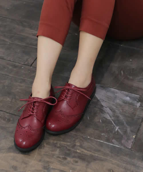 大人っぽく履きたい、こなれムードたっぷりのマニッシュシューズ。 すっきりしたシルエットを意識した春の定番、レースアップシューズ。 見た目に細身ですっきりと見せることによって メンズライクになり過ぎず、パンツにはもちろんスカートやワンピースなど甘めアイテムのハズシにもおすすめの1足です。 インソールのクッションをダブルの2枚構造に。 インソールだけではなく足を入れた時に足全体が包み込まれるような柔らかさを感じられるよう、 靴の内側にはウレタンメッシュクッション素材を。 インソールだけでなく指の上側、サイド部分など足が当たる全ての箇所がふかふかに。 足を入れて歩いた時のふわふわ感は感動もの!! 甲部分がレースアップで調整出来るタイプなのでインターネットでも比較的サイズ選びが簡単なのも購入の決め手のよう。 ウイングチップのクラシカルなデザインが高級感をより一層高めてくれます。 つやを抑えたマットな質感でより大人ムードを引き立てます。