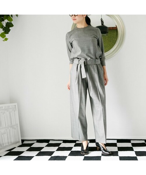 『SLADKY(スラドキー)』のニューコレクションは珍しく、特定のテーマがありません。 が、先シーズンから『はやる女』という裏テーマが実は存在しています。 今回、特にデザイナーさんのファッションへの”はやる”想いをカタチにしたコレクションで、 エッジがきいた遊び心が弾けてます! シルエットの大人っぽさと、素材使いがカジュアル過ぎない見え方になるマッチング。 SLADKYが作るオールインワンはそんなイメージ。今回は特に大人っぽく、 女性らしくなイメージ。 起毛感のない表面がなめらかなツイード調の素材は、ちょっとレトロな雰囲気。 デザインはシンプルでメンズライク。 キレイなドレープが出るやわらかな素材が、 パンツ部分のタックやウエストをしぼった時のギャザーがさり気ないポイントになるような、 そんなシンプルさ。 小物使いやアクセサリー・シューズでかなり雰囲気が変わりそう。 1枚で全身をまとうアイテムなので、それだけでイメージが強くなるのも着回ししにくいもの。 なかなか見つけられなかった、理想のオールインワンです。
