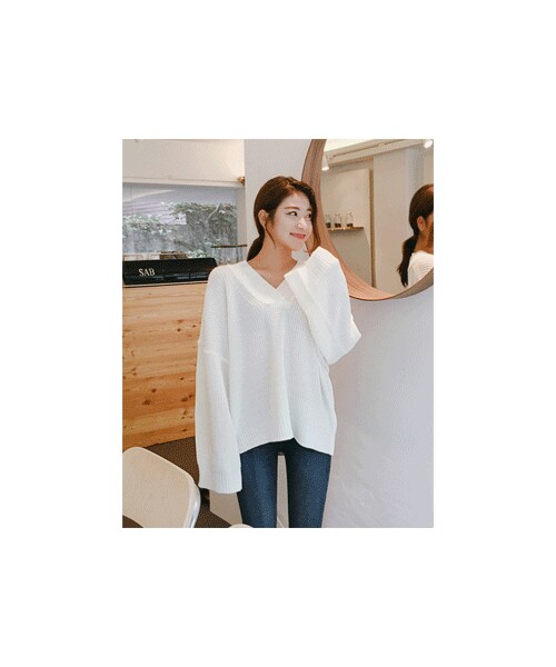 ルーズフィットのVネックロングニットです。 レトロ感を楽しめるボリューミーなニットは、大人目のVネックに仕上げることですっきり感をプラス。 ゆったりめのシルエットなので、体型カバー力も抜群★ ワイドなスリーブはより女性らしさをアピールできるので、デートルックとしておすすめです。