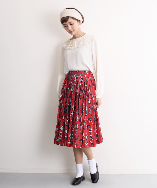 【 merlot plus (メルロープリュス) とは 】 merlotのオケージョンライン。 普段着にPLUSしてドレスアップできる ユーモア&ハッピーな「きちんと着」を提案。 結婚式や二次会、パーティーなどのお呼ばれ、オフィスで大事なお取引先との商談時などちょっとフォーマルな服装が求められるシーンで使える[きちんと着]。 少しだけ周りと違った、ワンピースだけじゃない、ちょっぴり個性的で遊び心を忘れないお洒落を楽しめるmerlotが発信しているオケージョンラインです。 コンセプトにあるように、普段のカジュアルスタイルにも取り入れられるアイテムです。 結婚式二次会やパーティーはもちろん、カジュアルスタイルにも取り入れられるアイテム。 カラフルな生地に映える総柄はマダガスカルとオウムのユニークなプリント。 ボリューミーなニットとの異素材コーデがおすすめ。 他と差を付ける個性派プリント。 裏地有りです。