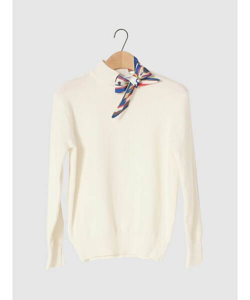 柔らかな肌触りを誇るビスコース素材ニットです。 普段のスタイリングにアクセントを与えてくれるスカーフが付いているのも嬉しいポイントです。 取り外しも可能だからボトムスや気分に合わせて変えるのもOK。 どんなボトムスでも相性良し。