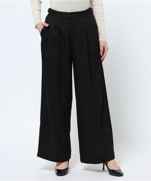 ロングシーズン着られるツイル素材を使用しています。 程よい落ち感はありながらも、厚みがあるのでカジュアルにも対応出来る素材感。 前身頃にタックを二本とり、キレイなボックスシルエットが出るようにしています。 ワイドパンツは気になる太ももやヒップ周りをカバーしてくれる上、足を長く見せてくれる優れものです。 また、ウエストにアジャスターが付いているので調節もでき、トップスインした時のポイントにもなります。