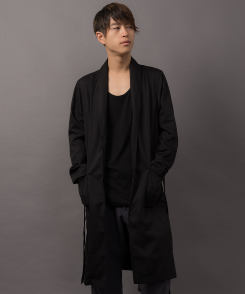 柔らかく落ち感のある素材で作られたショールカラーガウン。着心地、触り心地が抜群で綺麗なシルエットが大人びた印象を与えてくれます。コートの中に着てレイヤードしても◎。カーディガンのように軽く羽織れます。#黒 #セットアップ