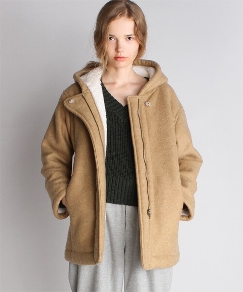 ●お届け予定 : 2016年10月中旬※こちらは予約商品になります人気のボンディング素材が今年も登場昨年ご好評を頂いた「ボンディング素材」が、生地を少し改良して再登場。ふわっとした印象の ニットソー生地の裏に、シープボアを貼付けたボンディング素材で、ボリュームがあるのにエアリーな質感が特徴です。一枚仕立てのラフさもポイントに。柔ら かく暖かいイメージを活かし、ふっくらとした印象に仕上げました。ZIP UPデザインのジャケット。裾にかけてすっきりとさせているので、フロントを閉めても着崩れせずコンパクトなシルエットで着用して頂けます。大きめのフードが首もとをすっぽりと包み込む感じも可愛らしく、ボトムを選ばない絶妙な着丈も魅力です。※画像の商品はサンプルです。実際の商品と仕様、加工、サイズが若干異なる場合がございます。■ KEYWORD ■アウター/羽織り/ウール/裏ボア/防寒/ニット/ワイドパンツModel:身長 166 cm 着用サイズ:Mサイズ
