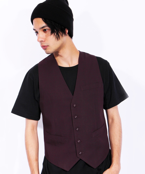 【ZOZOTOWN ランキング1位獲得★!!】【Smart 10月号掲載商品】ストリート系 アメカジ系 に大人気の 5つボタン スーツ生地 ジレ ベスト メンズ のご紹介です♪クラシックな5つボタンのデザインが、落ち着いた大人の印象に仕上がっております。全体のラインが タイト で綺麗なシルエットですのでスタイリッシュにご着用頂けます。 ジャケット と合わせて フォーマル に Tシャツ 等と合わせて カジュアル にと、スタイルに合わせて様々な着こなしが出来るアイテムです。前身はスーツ生地ですが、背表は着脱しやすく 光沢 のあるポリエステル生地との 切替 タイプになっており、ドレッシーな逸品です。背表には 尾錠 が施され、サイズの微調整が可能となっております。また、背表と裏地を同生地にし、尾錠部分は前身と同生地で細部にまで拘り抜きました。カラーは 定番人気 ブラック グレー ベージュ ワイン ネイビー の全5色、サイズは M L LL 3L と豊富にご用意しております。今期大人気 ジレ ベスト スーツ生地 ジレベスト 無地 ジャケット ブレザー をこの機会にぜひチェックして下さい。重さ 約142g素材感 伸縮性…あまり無い 透け感…無い 生地の厚み…やや薄い 着心地…ややタイト 肌触り…普通