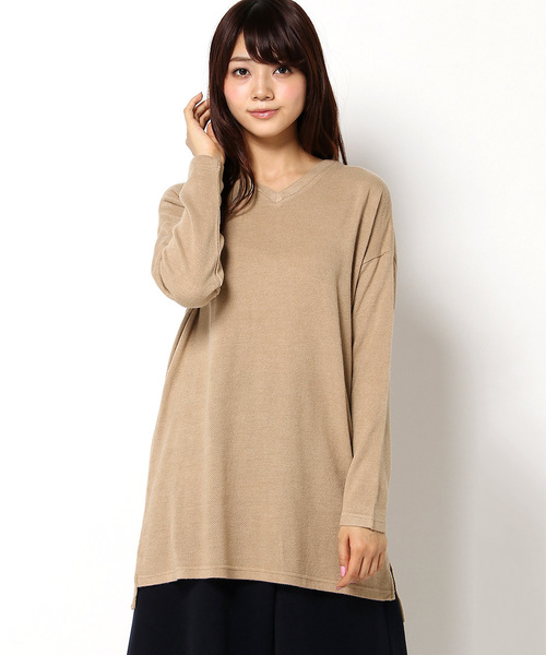 表面に凹凸の出る編み方をしたニットチュニック。薄い起毛をかけることで、ふんわりとした優しいタッチに仕上がっています。シルエットはリラックスなゆるめサイズ、首元は今年らしくVネックに。チュニック丈なので、スキニーボトムと合わせたり、あえてワイドボトムと合わせてボリュームを楽しむコーディネートもおすすめです。