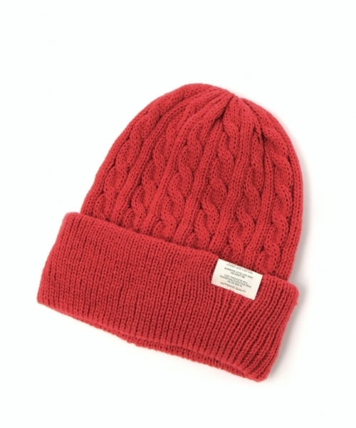 肌触りの良いアクリル素材で仕立てたニットキャップです。 暖かみのあるケーブル編みを前面に施した、秋冬のスタイリングと相性の良い一品。 豊富なカラーバリエーションも魅力です。 フリーサイズなので、ご自身用としてはもちろん、ギフトにも最適です! ※光の当たり具合で、商品と画像の色に若干差がある可能性がございます。ご了承ください。