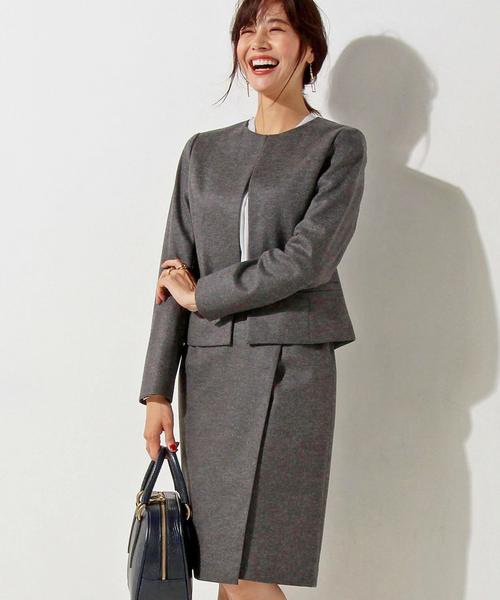 柔らかなスムース素材を使用した着心地のよいノーカラージャケット。 装飾をそぎ落としたミニマルなデザインが、より女性らしい品のあるスタイリングへと導きます。 同素材のテーラードジャケット(品番:15222574249)スカート(品番:15242574249)をご用意しております。 店舗にお問い合わせの際は、下記の品名/品番をお申し付け下さい。 品名:○UBBT W SMOOTH NCL 50JS 品番:15222574250