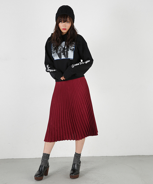 【SHINY PLEATS SKIRT】 光沢感がポイントのプリーツスカート。シンプルなコーディネートの差しになるので、デイリーに使えてこなれ感がアップする優秀アイテムです。