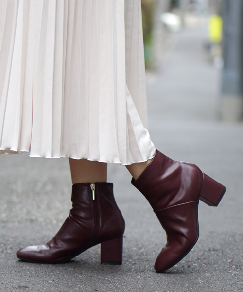 丸みを帯びたラウンドトゥがレトロなシンプルショートブーツ。装飾のないブーツなのでカットワークにこだわりました!履き易い太めのヒールもおススメのポイントです。パンツスタイルからスカートスタイルまで幅広くコーディネートして頂けます。