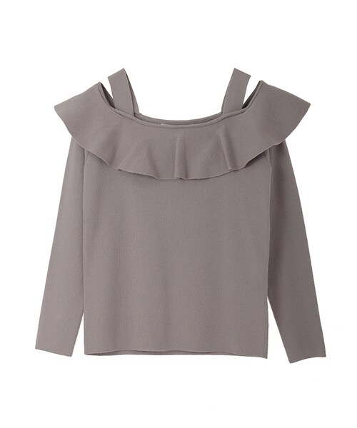 衿ぐりのフリルが印象的なフェミニンプルオーバー。