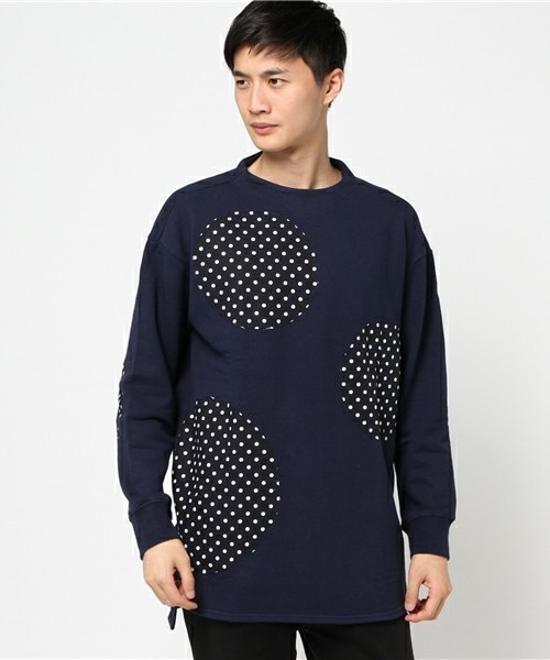綿裏毛とドットのシャツ地を使いオーバーシルエットのトレーナーを作りました。 シンプルなイメージながら、ドットの生地が控えめに主張します。 製品洗いでラフに仕上げています。