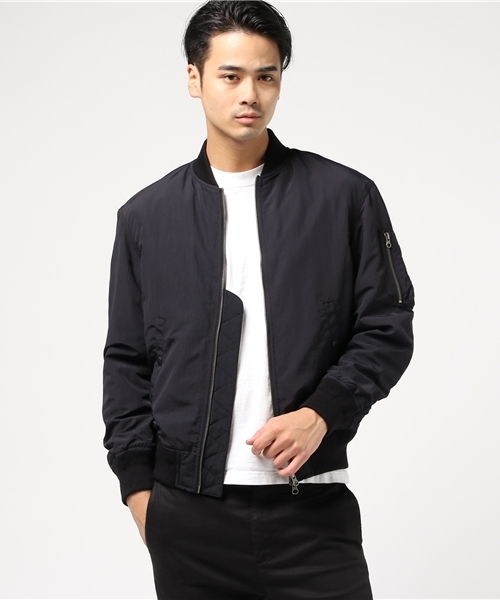 ◆FREDY&GLOSTER◆ 雑誌掲載「FINEBOYS」掲載 春夏シーズンに好評だったMA-1を撥水加工したナイロンタッサーに置換え、さらに中綿を入れ秋冬仕様にアップデートしています。前開き2/3の高さまで取られたウインドガードは首元のレイヤードを邪魔せず、風止めの役割はしっかり果たす実用的ディティールです。すっきりとコンパクトなシルエットで野暮ったさはなく、アーバンスタイルにしっくり溶け込む一着となっています。