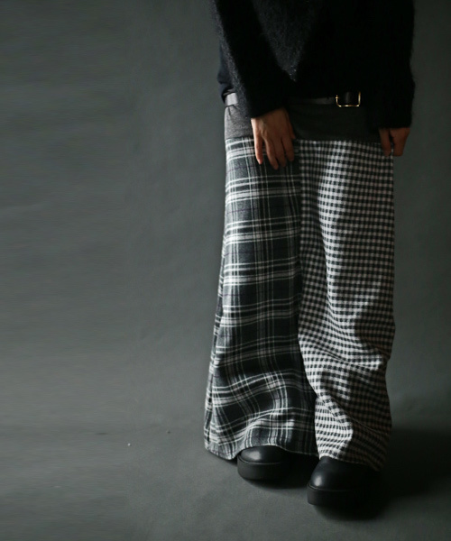 check×チェック、ふたつの顔をあわせもつ。『お洒落は毎日挑戦するもの。』 スカートには釘付けの存在感を。2wayチェック切り替えリブロングスカートの登場です。 ご好評を頂いております2wayロングスカートに、新たな柄がお目見えです。タータンチェックとギンガムチェックを組み合わせて、違った柄で切り替えているからひと味もふた味も違う大人の印象に。たった一枚に凝縮されたお洒落さがあるから、存在感抜群です。 起毛感ある生地でA/Wには最適♪落ち着いた雰囲気をたずさえつつも、凛とした佇まい。お洒落であり、女性らしくもある。裏地も付いているので透け感も安心です。定評のある長いリブ部分があるのでワンピースとしても着れる2way仕様でオールシーズン活躍するアイテムですので、この機会にぜひお見逃しなく。人気のこのシリーズは柄違いでたくさん持っていたいですね♪ ※柄の出方は生地の裁断により一点一点異なります。ご指定は出来ませんのでご了承の上お買い求め下さい。
