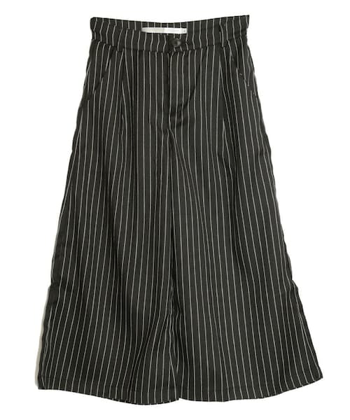 ストライプ柄が今年らしい雰囲気を醸し出すAラインシルエットのガウチョパンツ両サイドにポケットとベルトループ付きで機能性も◎ベルトループ付きなのでインスタイルもすっきりキレイにまとまります。