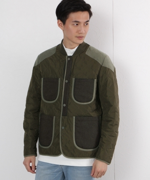 ★存在感のある大胆な切り替えデザイン★ 軽くて温かい機能素材『サーモライト中綿』を使用した一着。 ナイロンベースにウールの異素材切り替えや襟元のリブ仕様でミリタリーテイストなデザイン。 前、横、後どこから見ても切り替えがアクセントになり存在感抜群です。