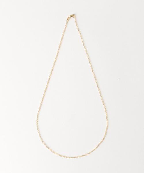 端正なコマの並びや美しい光沢が魅力のチェーンネックレス。上品なアクセントとして効果を発揮し、様々なコーディネートをブラッシュアップさせてくれます。ラフなカジュアルに大人の印象を持たせたいときにも便利なアイテム。お手持ちのペンダントヘッドをセットするのも素敵なアレンジです。 店舗にお問い合わせの際は、下記の品名/品番をお申し付け下さい。 品名:UDCM GOLD 200 CHAIN NL 品番:1333-343-5450