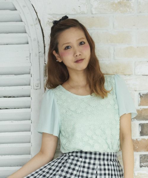 フロントの贅沢なレースがロマンティックなTシャツ。 カーデやブルゾンのインナーとしても大活躍間違いなしです! フェミニンなスタイリングにはもちろんのこと、 デニムやショートパンツなどのカジュアルなアイテムとも◎品番: 1035017514 model:H162 B78 W60 H84 着用サイズ:FREEmodel:H166 B80 W58 H85 着用サイズ:FREEブラック model:H169 B80 W60 H85 着用サイズ:FREEブルー model:H163 B78 W58 H84 着用サイズ:FREE