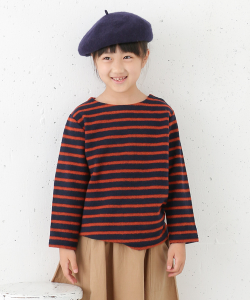 オリジナルハウスブランド「FORK&SPOON」 ふわふわで肌触りの良い起毛生地でお作りしたボーダーカットソー。 襟ぐりにスナップが着いており小さなお子様でも着脱も簡単。 大人サイズの展開もあるので家族でお揃いもオススメです。