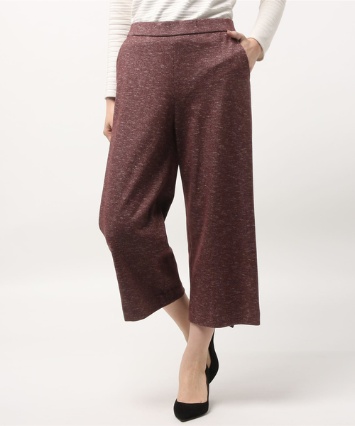 ポリエステルに綿スラブ糸をカバーリングする事により、メランジ感を表現した素材で、表面がリブ組織のダブルフェイスになっています。ストレスフリーな着心地を追求して、ウエストはゴム仕様になっています。同素材のトップスとバランス良くコーディネート出来ます。 ※同素材のトップス(853-6298003:カノコジャージーBL )とセットアップ着用が可能です。