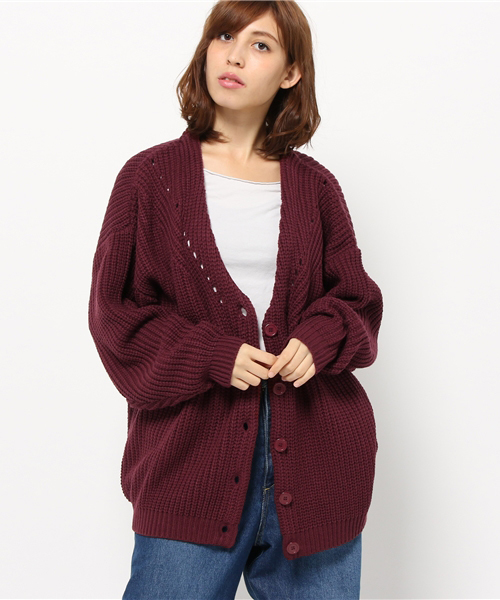 ざっくりとした編みのゆるっと着用できる カーディガン。 オーバーサイズのトップスの上からも 無理なく着用でき あわせやすいアイテムとなっております。 両サイドにスリットタイプのポケット付きです。