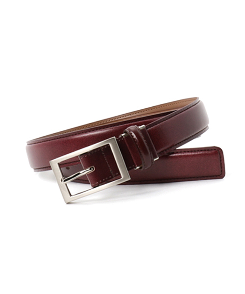 日本国内で作り上げた、高品質なレザーベルト。不規則なムラ模様を手作業で与える“アンチック仕上げ”を施して、独特なこなれ感を引き出しています。色ムラは控えめであるため、ビジネススタイルにも問題なし◎ スクエア型のスタイリッシュなバックルを採用しています。少し大きめで、男らしい! ※革本来の風合いを生かす仕上げ加工をしているため、着用時の色移り、色落ち、色焼け、水濡れなどでシミになる場合がございます。予めご了承下さいませ。 ※ベルト裏の革色は変更になる場合がございます。