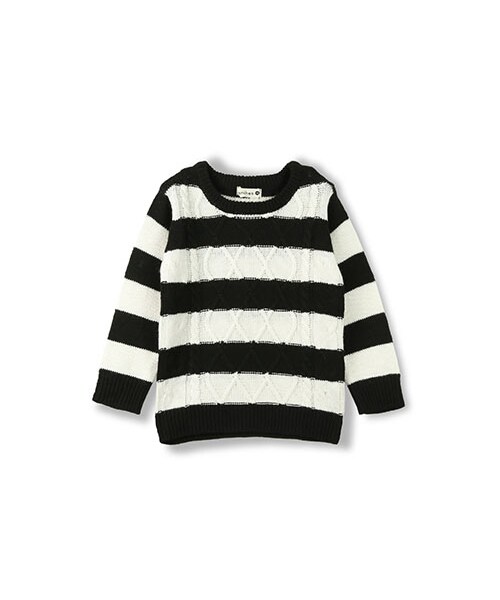 シンプルなボーダーのニットです。身頃の編み地もポイントとなっています。インナーにシャツを着たスタイリングや、アウターのインナーとしても使いやすいデザインです。関連商品で男女ペアを楽しんでいただけます。ご自宅でお手入れ出来、安心です。